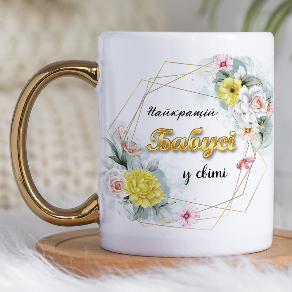 Чашка 330 мл з золотою ручкою Найкращій бабусі в світі. Кращий подарунок бабусі.