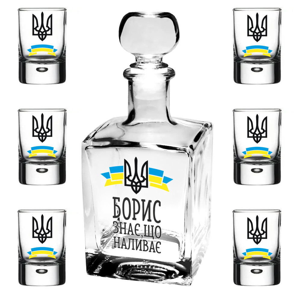 Подарунковий набір " Графин-куб 500 мл + 6 чарок - Борис знає, що наливає"