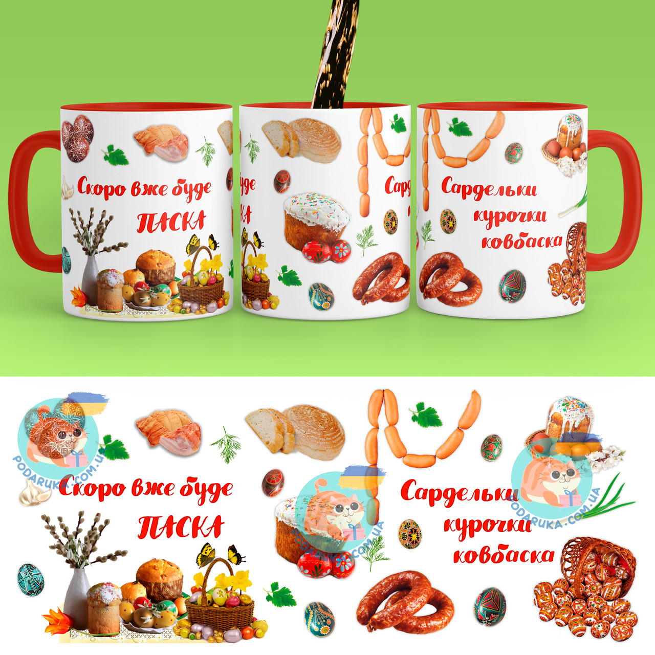 Чашка 330 мл з червоною ручкою " Скоро вже буде паска"